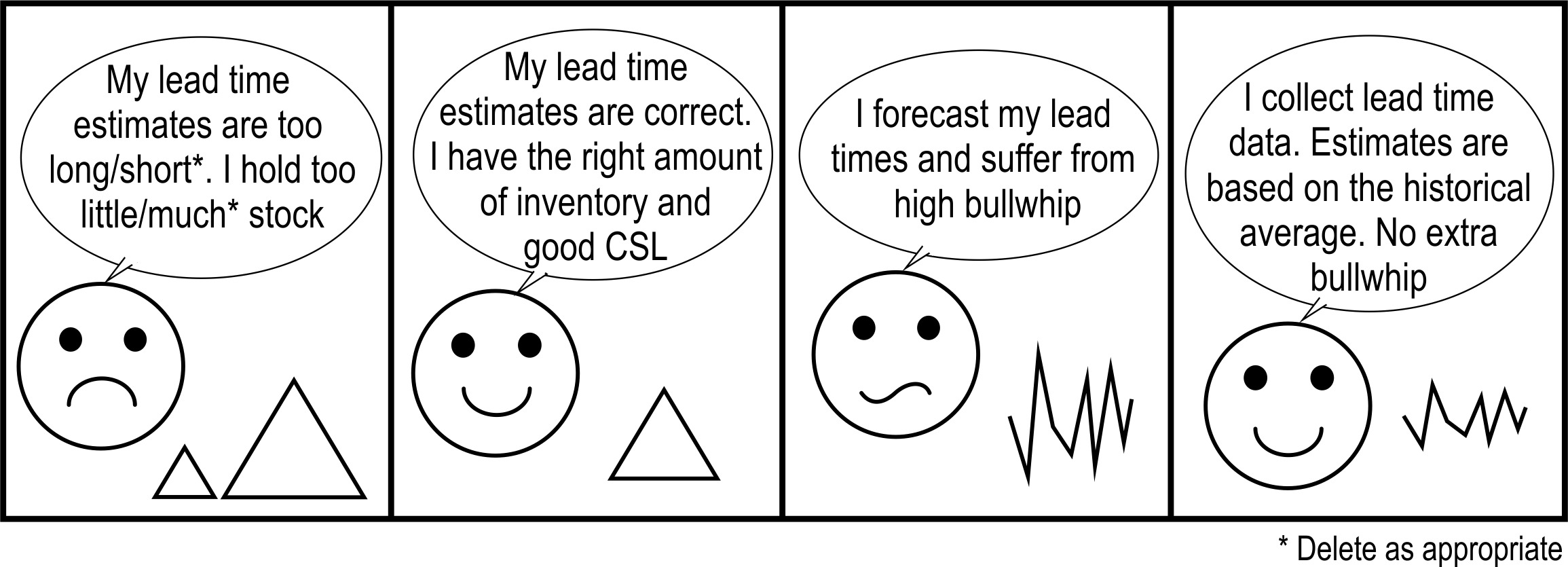 There is plenty of advice for coping with demand uncertainty; we will review some shortly. The standard advice for coping with supply uncertainty is to consider a stochastic lead-time exists and to use some insights about the variance of random sums of random numbers, but the approach is not reliable, often giving incorrect advice. Process uncertainty is usually accounted for by adding in buffer lead-time.