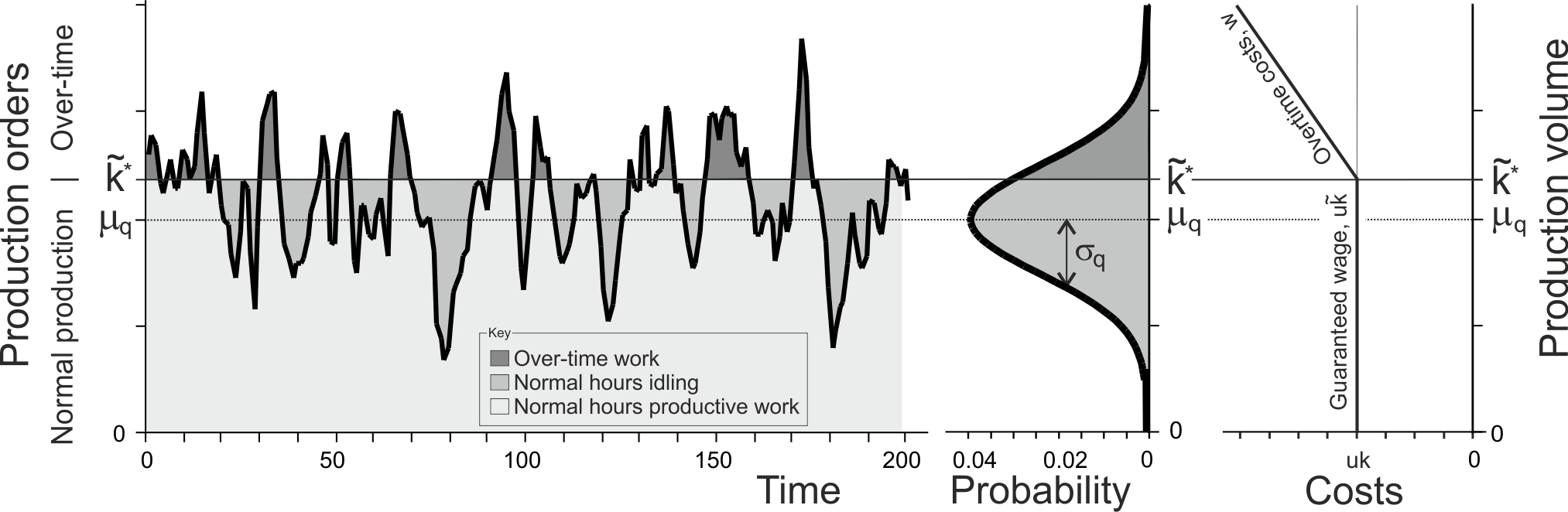 - the cost of a production set-up is \(k\) (a change-over is incurred when production facility switches from producing one product to another),